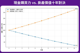 通膨最可怕的地方,不是一次性的價格跳升,而是它會在日常裡慢慢吃掉現金的價值。以3%通膨率作為情境試算,今日手上的1,000萬元現金,10年後的實質購買力將只剩下約744萬元。帳面數字或許沒有改變,但未來能換到的生活條件、資產規模與選擇空間,卻早已不同。當物價、薪資與資產價格都在往上墊高,唯有現金停在原地,這種無聲的縮水,正是許多人在大通膨時代下最真實的焦慮來源。